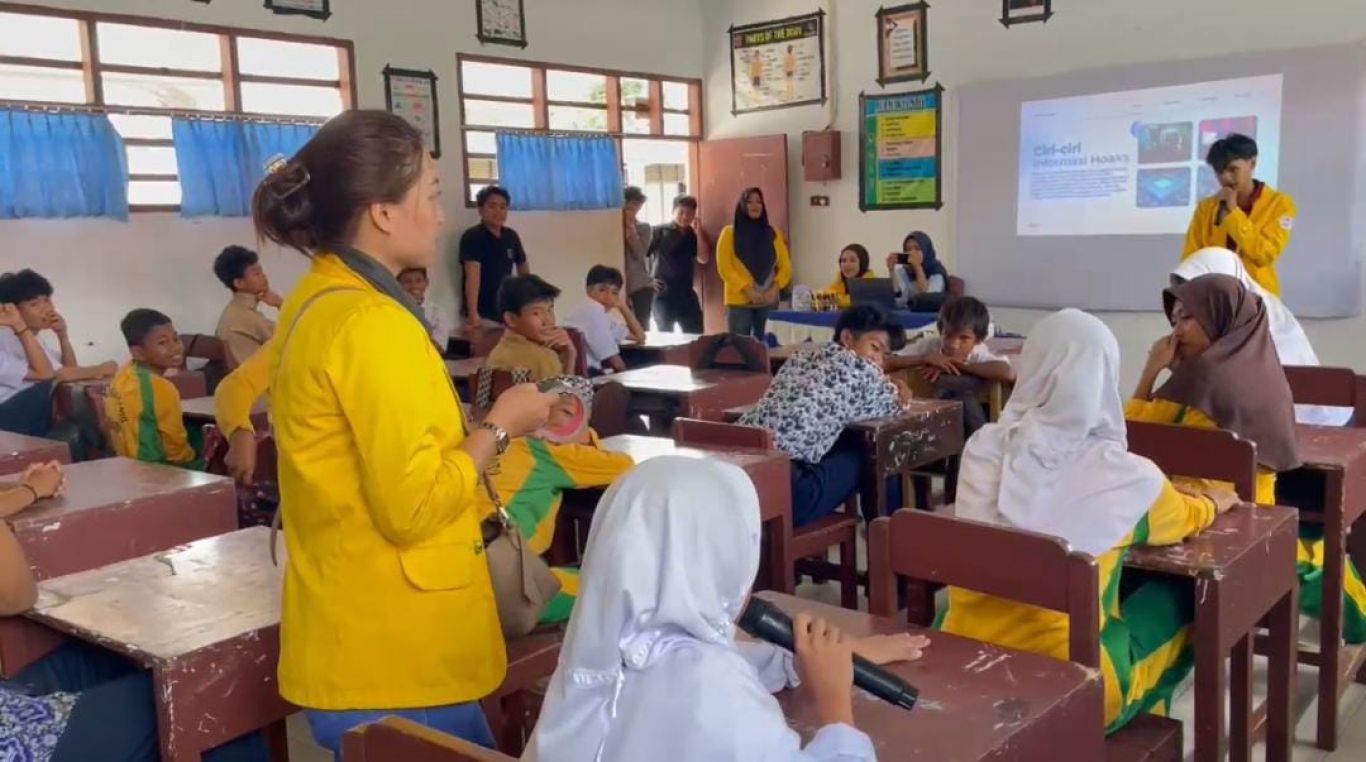 Materi disampaikan oleh Awal Saputra, yang memaparkan berbagai isu digital yang sering dihadapi siswa. Pada sesi literasi hoaks, ia menjelaskan pentingnya memeriksa sumber informasi, melakukan verifikasi fakta, dan memanfaatkan fitur pengecekan kebenaran pada platform digital.