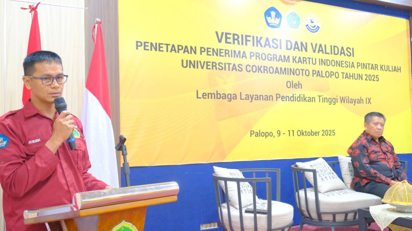 ANTARAYA MEDIA, PALOPO – Universitas Cokroaminoto Palopo (UNCP) menjadi tuan rumah kegiatan Verifikasi dan Validasi Penetapan Penerima Program Kartu Indonesia Pintar (KIP) Kuliah Tahun 2025 yang dilaksanakan oleh Lembaga Layanan Pendidikan Tinggi (LLDikti) Wilayah IX.