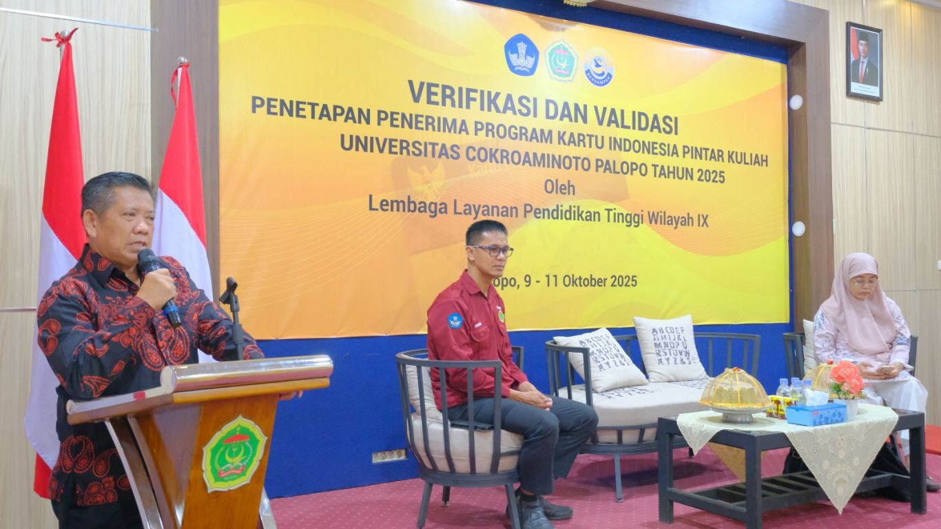 ANTARAYA MEDIA, PALOPO – Universitas Cokroaminoto Palopo (UNCP) menjadi tuan rumah kegiatan Verifikasi dan Validasi Penetapan Penerima Program Kartu Indonesia Pintar (KIP) Kuliah Tahun 2025 yang dilaksanakan oleh Lembaga Layanan Pendidikan Tinggi (LLDikti) Wilayah IX.