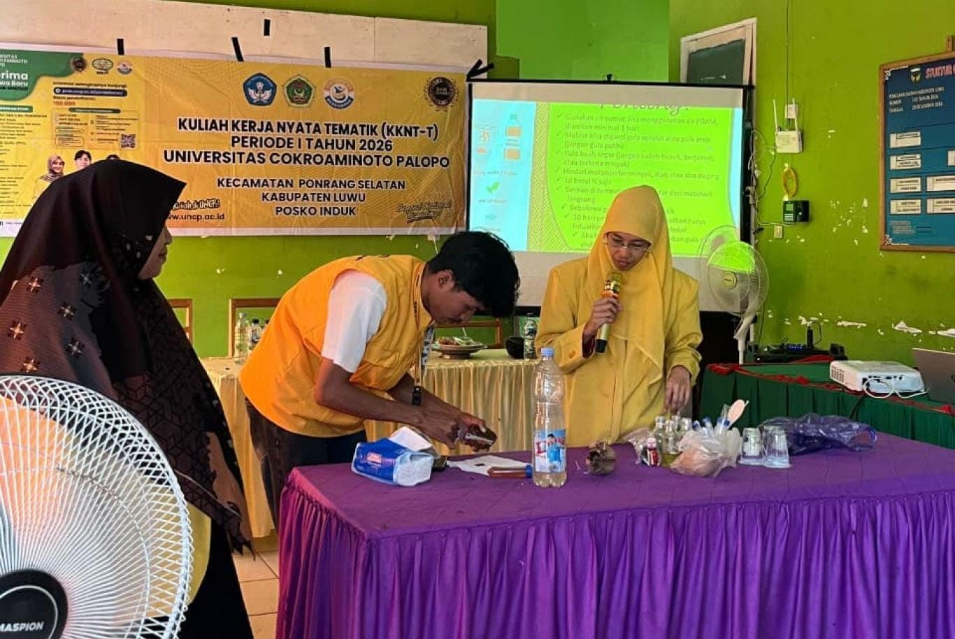 ANTARAYA MEDIA, LUWU – Mahasiswa Kuliah Kerja Nyata Tematik (KKNT) Universitas Cokroaminoto Palopo (UNCP) Periode I Tahun 2026 menggelar Pelatihan Pembuatan Sabun Berbahan Dasar Ekoenzim pada Senin, 16 Februari 2026, di Kecamatan Ponrang Selatan.