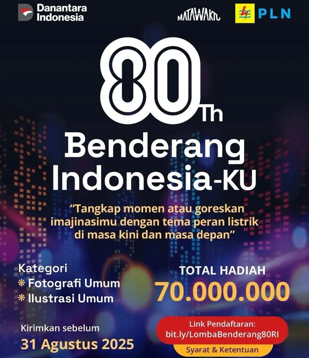 ANTARAYA MEDIA – Dalam rangka memperingati 80 Tahun Indonesia Merdeka, Yayasan Riset Visual mataWaktu & PLN mengadakan Lomba Fotografi & Ilustrasi Tingkat Nasional dengan tema.