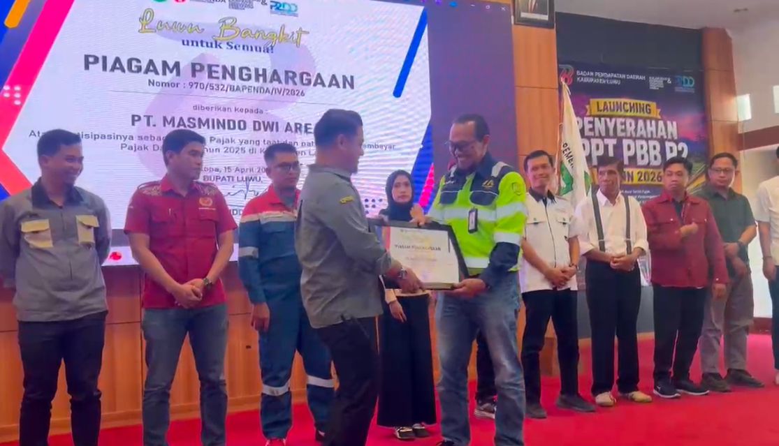 ANTARAYA MEDIA, PALOPO — Komitmen PT Masmindo Dwi Area (MDA) dalam memenuhi kewajiban perpajakan daerah kembali mendapat pengakuan. Untuk kedua kalinya secara berturut-turut, perusahaan tersebut menerima penghargaan dari Pemerintah Kabupaten Luwu atas kepatuhan dan kontribusinya dalam mendukung penerimaan pajak daerah.