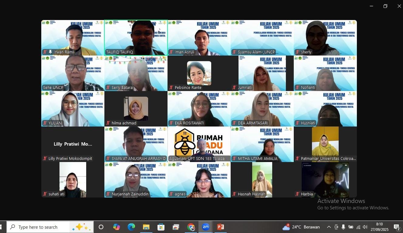Kegiatan yang digelar secara virtual ini diikuti oleh 28 mahasiswa baru bersama sivitas akademika FKIP UNCP.